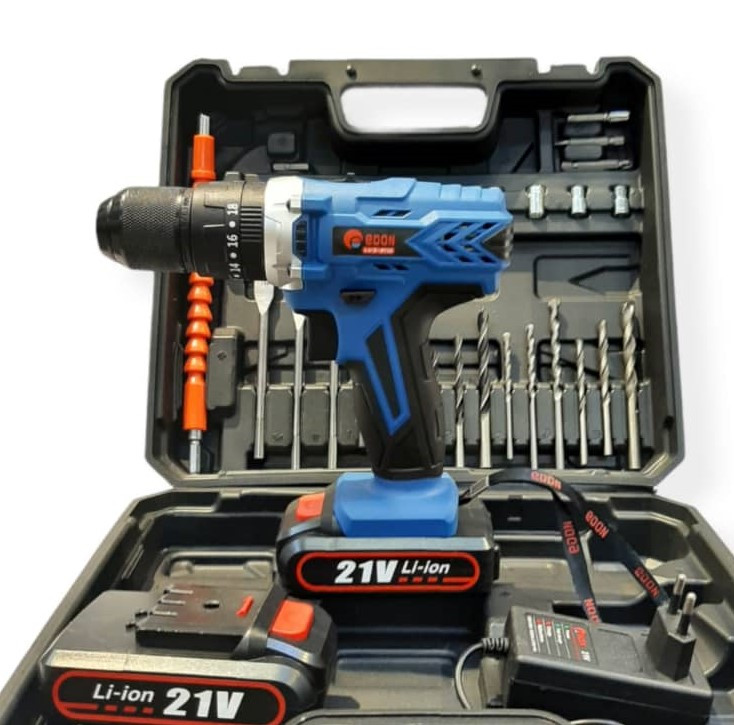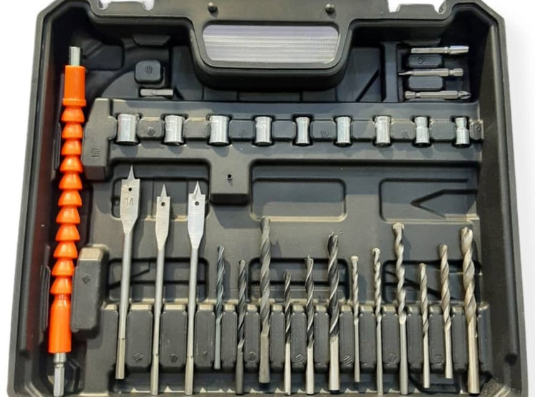 دارای مته آهن و مته چوب (سایز 4 و 5 و 6 میلی متر ) دارای بکس سایز 5 تا 13 میلی متردارای سه عدد نوک پیچ گوشتی دوسو ، سه عدد چهارسوبه همراه رابط فنر تاشونده – رابط فنری تا شوندهدارای تبدیل بکس خور سر دریلی سایز1/4 – دو عدد باتری -شارژر و گیره کمری